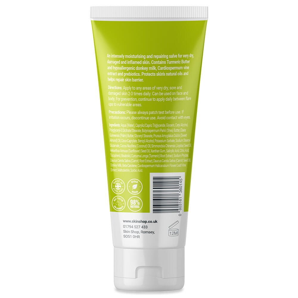 AS SEEN ON BBC BREAKFAST An intense dry skin rescue salve containing Turmeric Butter & Hypoallergenic Donkey Milk brings instant relief for patches of very dry, irritated and slow-to-heal skin.