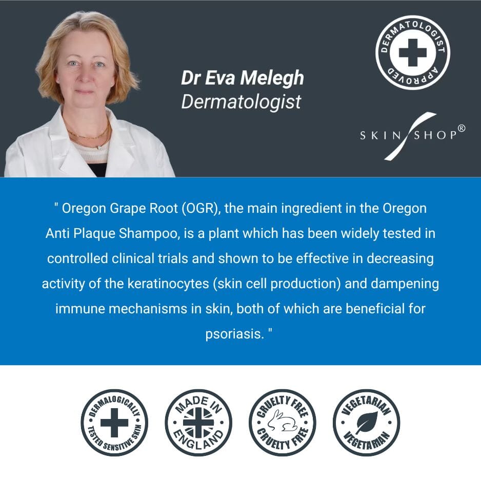 Oregon Anti-Plaque Shampoo is powered by Oregon Grape Root – a natural ingredient that’s been clinically proven to help soothe psoriasis-prone skin.
