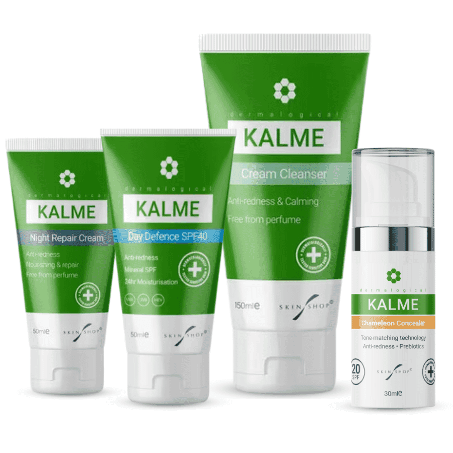 The Kalme Essential Skincare Kit is designed to cover all your skincare needs if you have rosacea. It includes a day cream with SPF40, a nourishing night cream and a water-free cream cleanser. These three products should cover all your basic daily skin care.