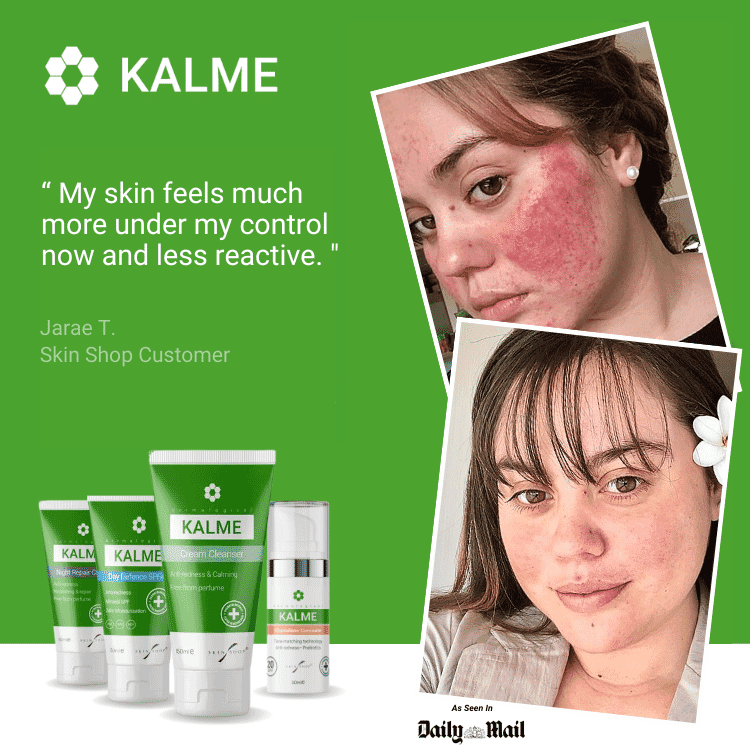One of the main issues is if you have been using any medicated or anti-bacterial products for your skin before or at the same time as using the Kalme products. Also most make up removers for normal skin can also cause sensitivity and flares in skin prone to rosacea as they contain solvents to dissolve make up, which are very irritating to skin prone to rosacea.